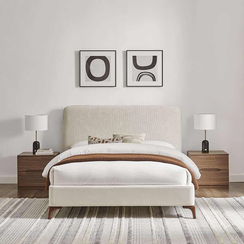 Its compact, curved frame makes it an excellent choice for smaller bedrooms or spaces where you want to make an impact without overwhelming the room. The soft silhouette helps balance stronger colours and accessories, making it ideal for more expressive interiors.